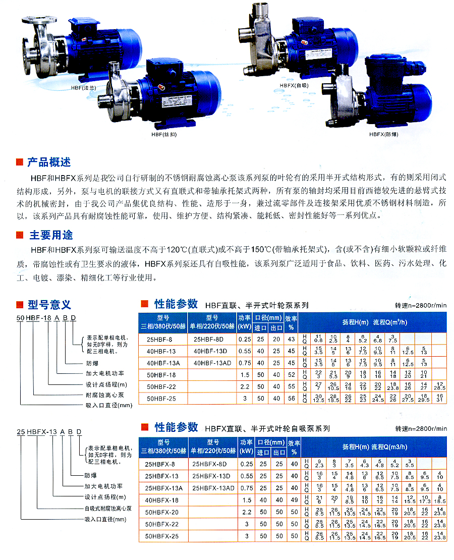 HBF,HBFX系列不鏽鋼耐腐蝕泵
