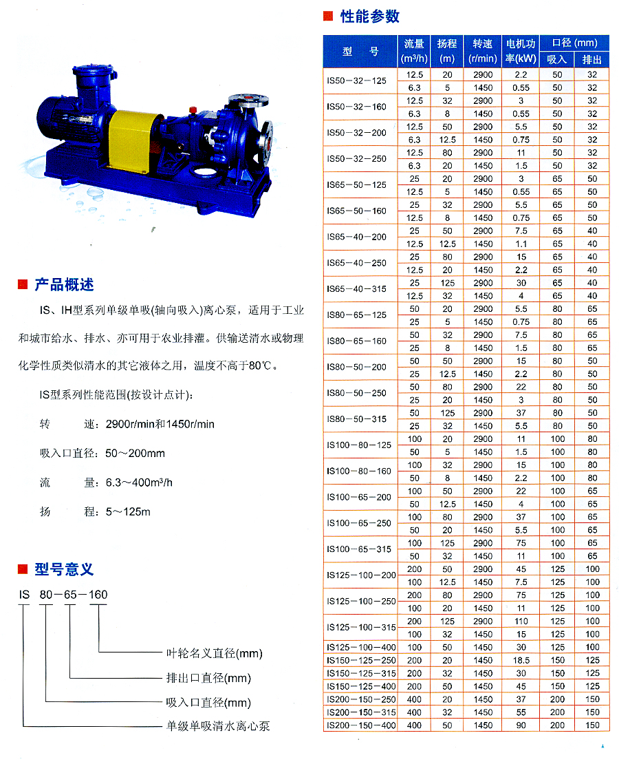 IS,IH系列單級單吸清水(防腐型)離心泵