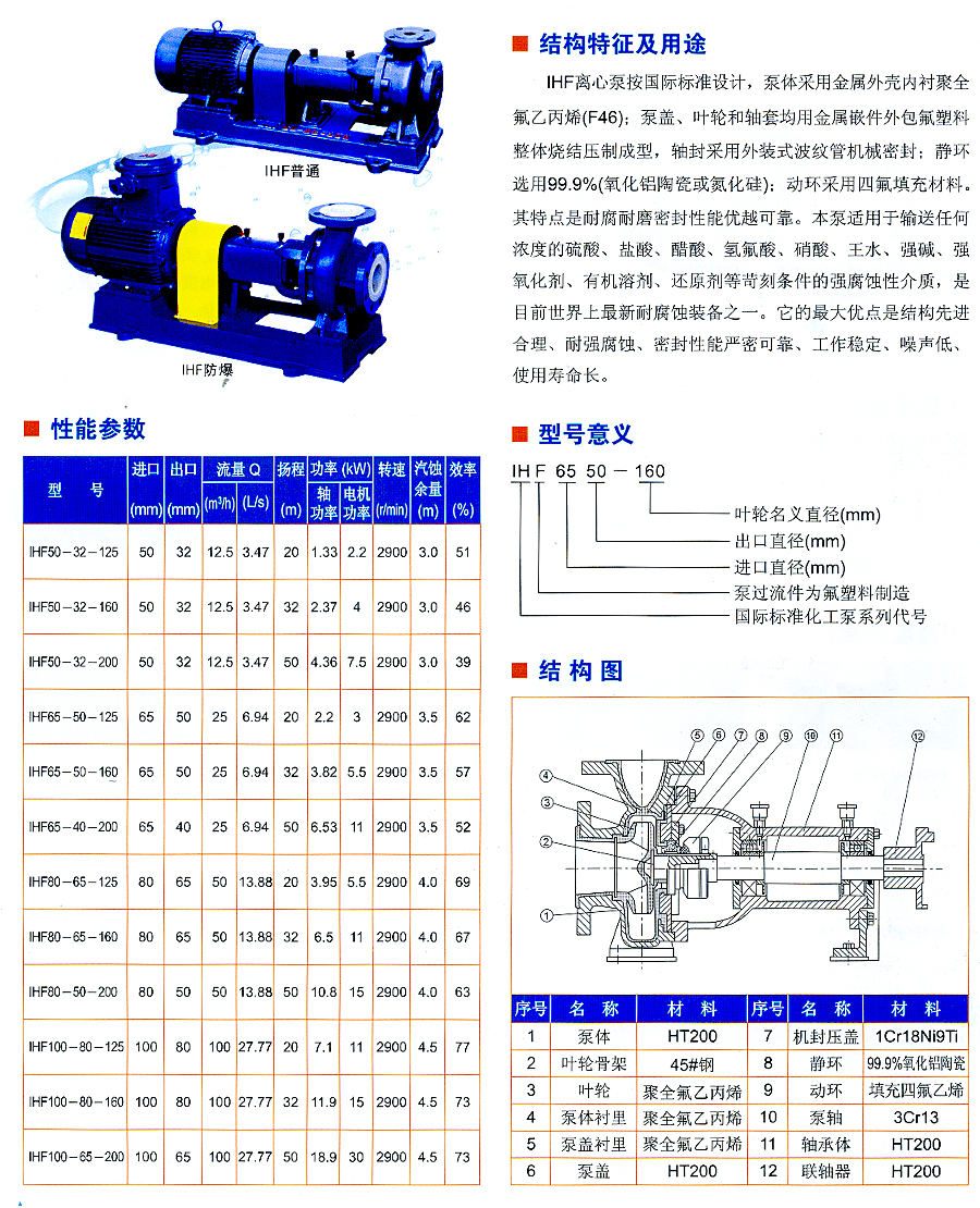 IHF系列氟許了(le)襯裏離心泵