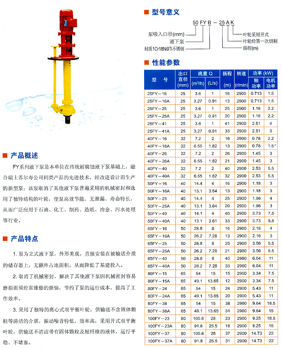 > 産品系列 > 不鏽鋼侵入式多級泵 液下(xià)排污泵 > FY系列液下(xià)泵