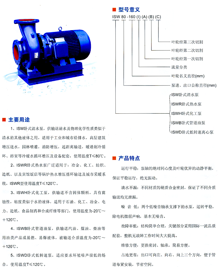 > 産品系列 > 不鏽鋼防爆管道泵 立式管道泵 > ISW系列卧式離心泵