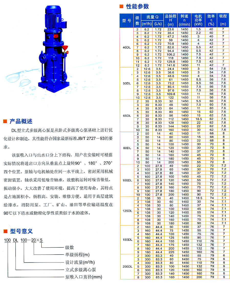 > 産品系列 > 不鏽鋼卧式輕型立式多級離心泵 > DL DLR系列立式多級離心泵