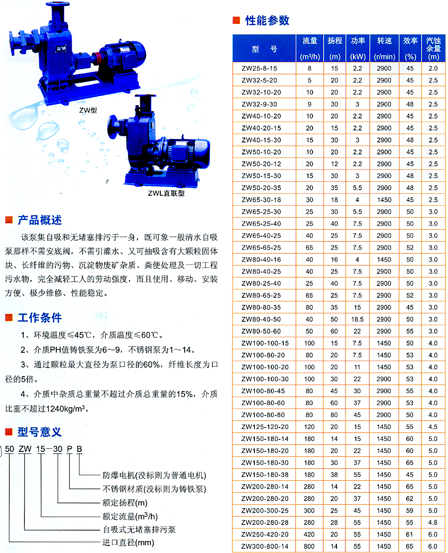 > 産品系列 > 防爆型自吸式無堵塞排污泵 > ZW ZWL系列自吸無堵塞排污泵